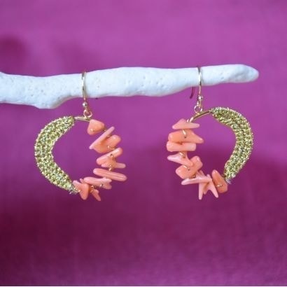 【素材】本体:真鍮 天然石:オレンジ珊瑚 仕様:ピアス