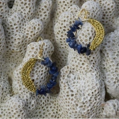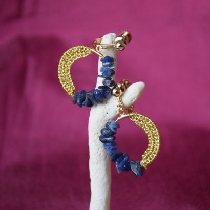 【素材】本体:真鍮 天然石:ソーダライト 仕様:イヤリング