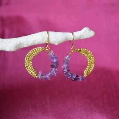 三日月のデザインをあしらったこのピアスはデザイナーによるハンドメイドで1点ずつ真鍮の糸を編んで造り上げています。