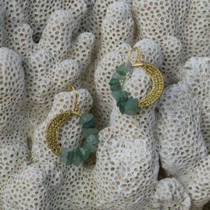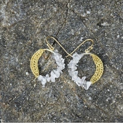 三日月のデザインをあしらったこのイヤリングはデザイナーによるハンドメイドで1点ずつ真鍮の糸を編んで造り上げています。